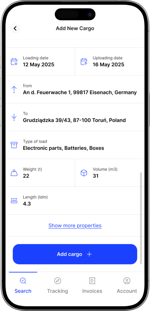Find cargo, find carriers, track, pay, insure. All in one place.